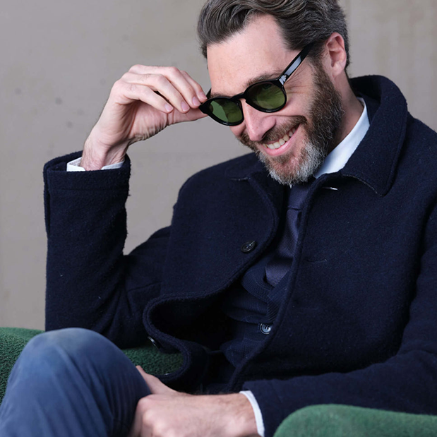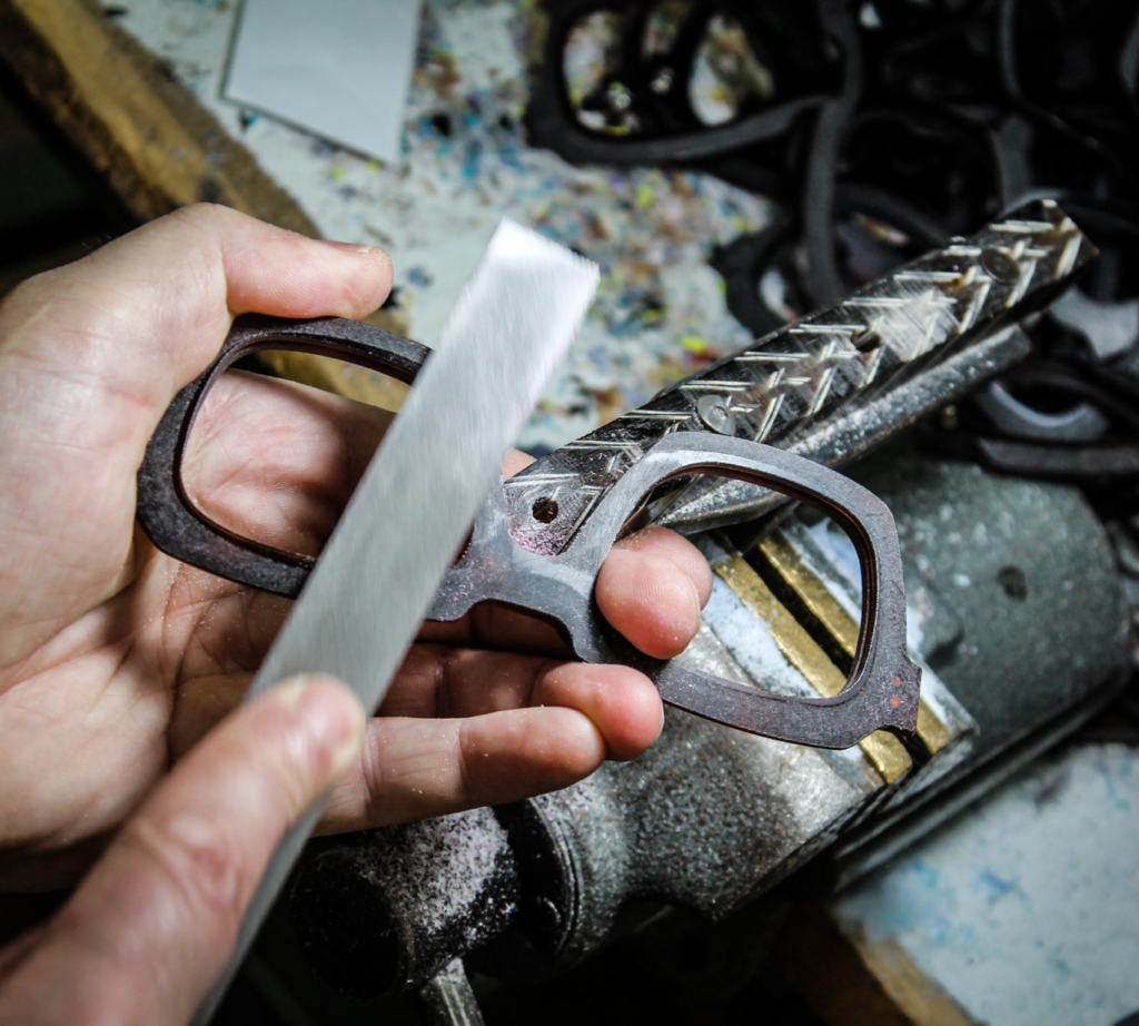 • De robuuste brillen en zonnebrillen met zijn bewuste ruwe lijnen stralen